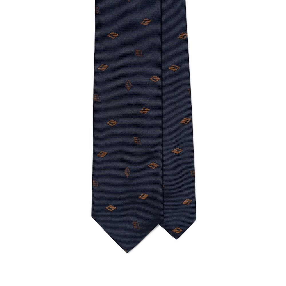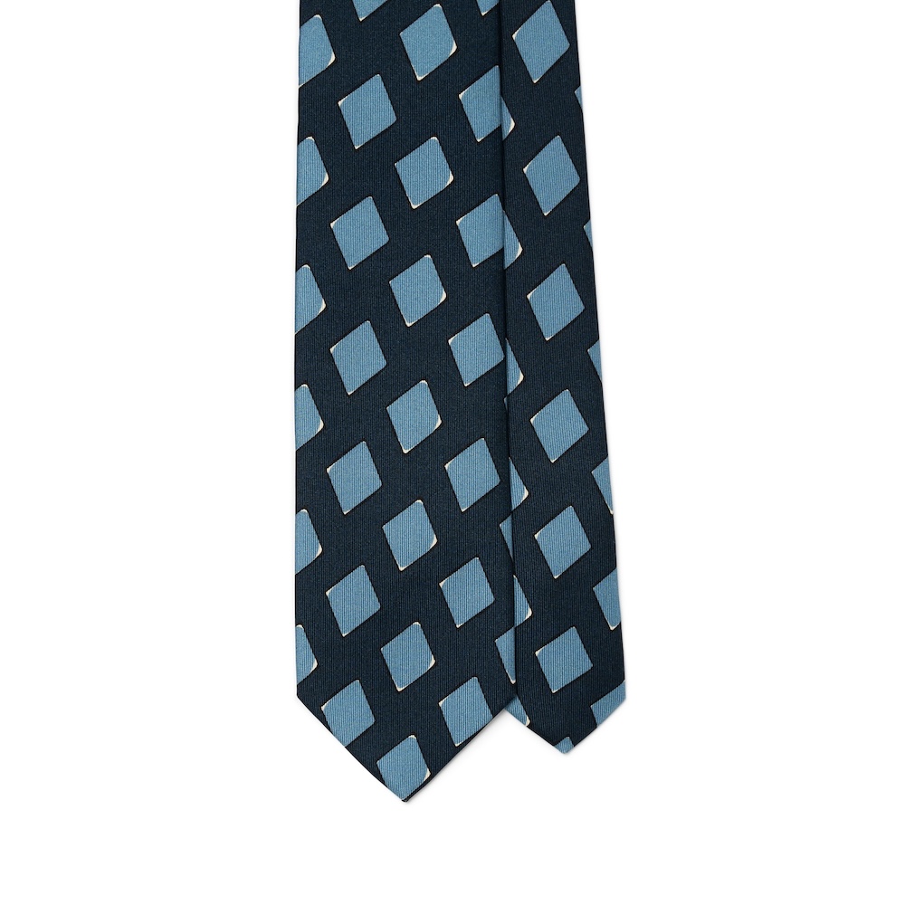 프랑코 바씨 블루 블록 다이아몬드 패턴 프린티드 실크 넥타이