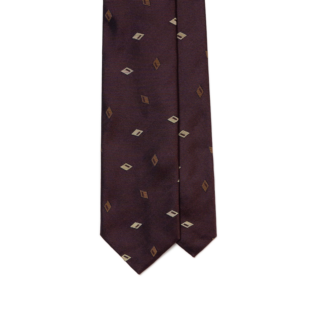 프랑코 바씨 브라운 다이아몬드 아이콘 패턴 우븐 실크 넥타이 컬렉션