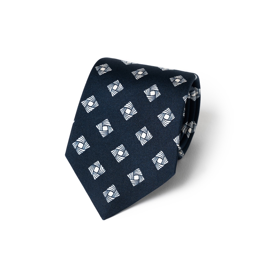 에리코 포르미콜라 화이트 스퀘어 트위스트 패턴 클래식 네이비 프린티드 실크 넥타이